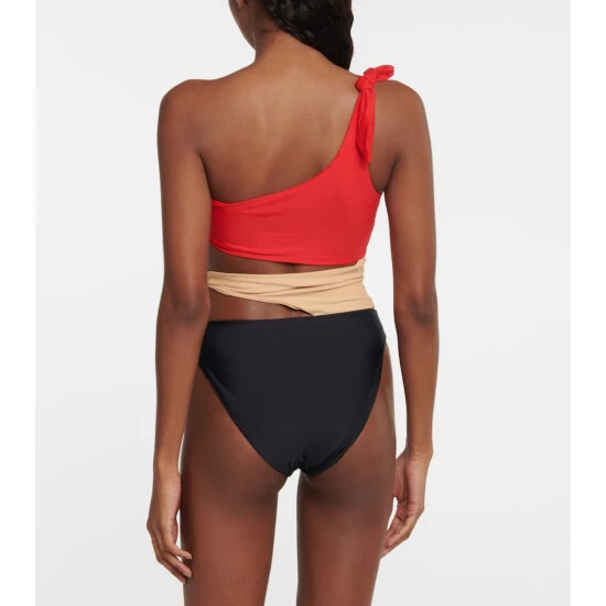 Turn heads with Rebecca Vallance’s Alvaro swimsuit. Shaped with a one-shoulder neckline and high-cut legs for minimal coverage, this colorblocked design is made from regenerated nylon with cutouts, self-tie detailing, and defining side boning.