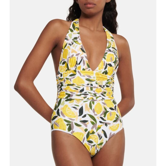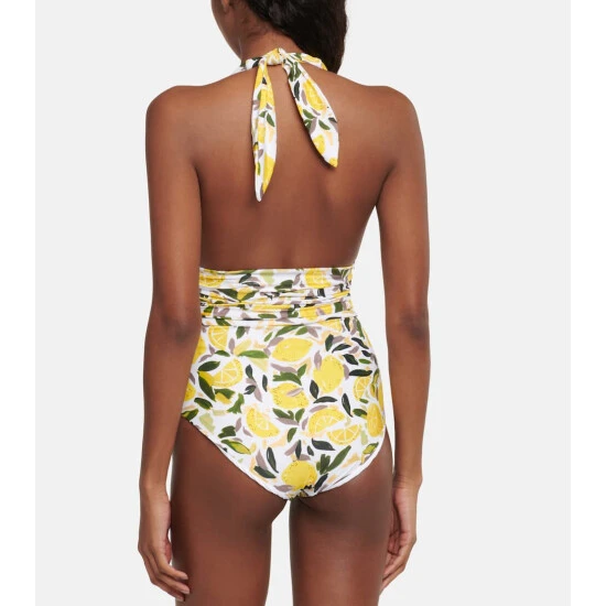 Dreamy Mediterranean landscapes await in Rebecca Vallance’s lemon-printed Amarilla swimsuit. Fitted with removable padding, it’s made from a regenerated nylon and shaped with a forever-flattering halter neckline and sculpting, cinching gathering below the bust.