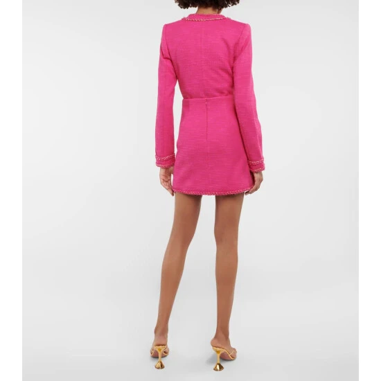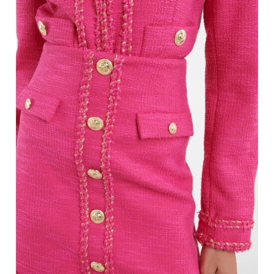 Bring a pop of color to your edit with the Anita miniskirt from Rebecca Vallance. Made from tweed, it has a classic cut and is accented with golden buttons and braided metallic trims.