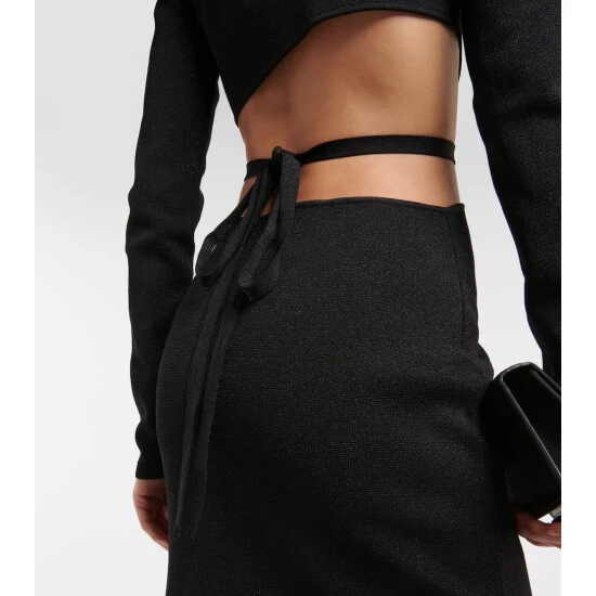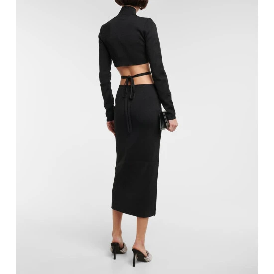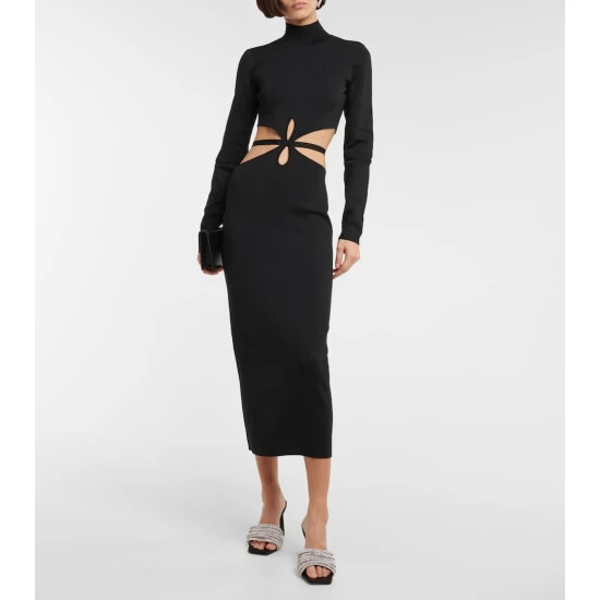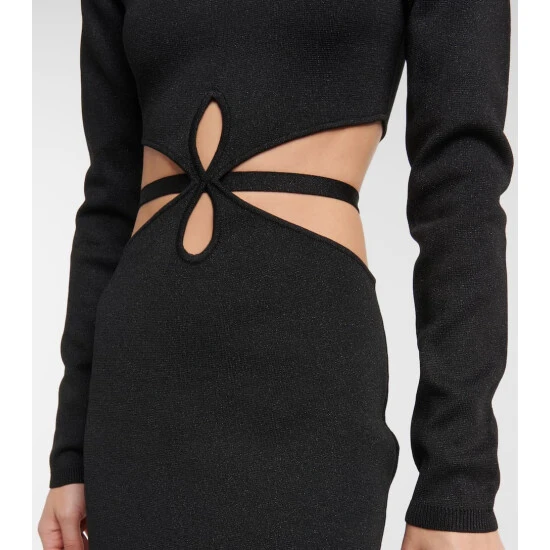 Make an elegant statement with Rebecca Vallance’s Brianna high-neck midi dress. It’s made from a compact knit fabric with metallic fibers for a touch of sparkle, featuring alluring cutouts and self-tie detailing at the bodice.