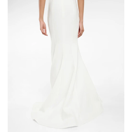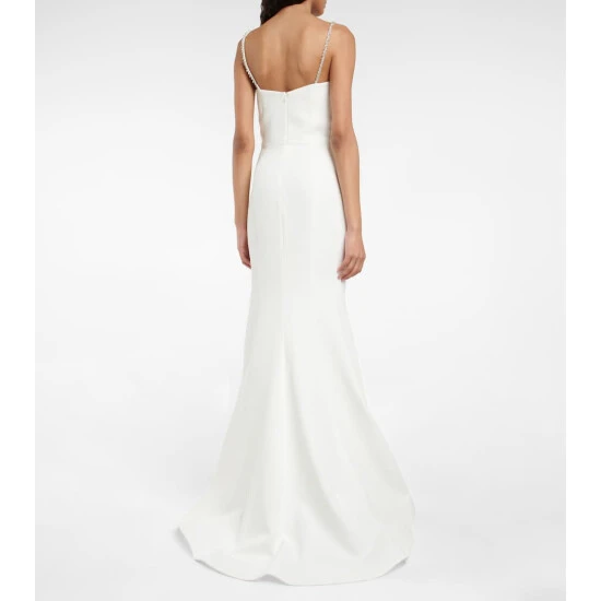 A mermaid silhouette, Rebecca Vallance’s Phoebe gown has crystal-embellished shoulder straps and a sweetheart neckline.