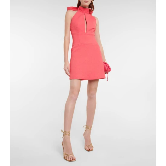 When the dress code is “cocktail party,” choose Rebecca Vallance’s Caitlin minidress. Made from textured crêpe, it has a plunging keyhole bodice with a taffeta collar that fastens behind the neck.