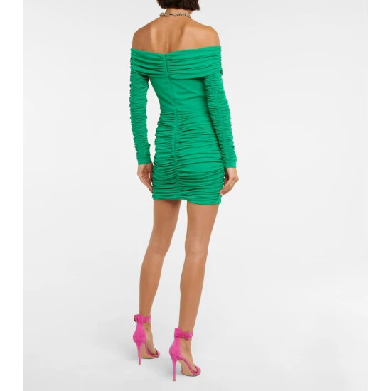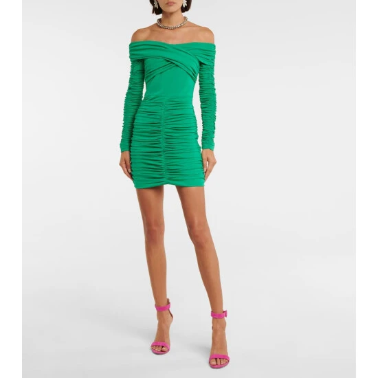 The Edie minidress from Rebecca Vallance is an off-the-shoulder style with ruched detailing.