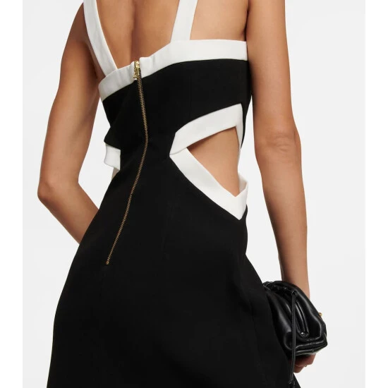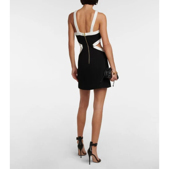 Rebecca Vallance blends classic Hollywood glamour with modern allure in the Hepburn mini dress. The slim fit style features side cutouts and bold contrasting trims.