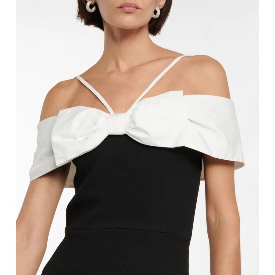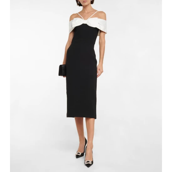 The pinnacle of Rebecca Vallance sophistication starts with this Hepburn midi dress, inspired by the icon of elegance herself. This timeless two-tone piece is made from crêpe and is defined by its contrasting taffeta bow.