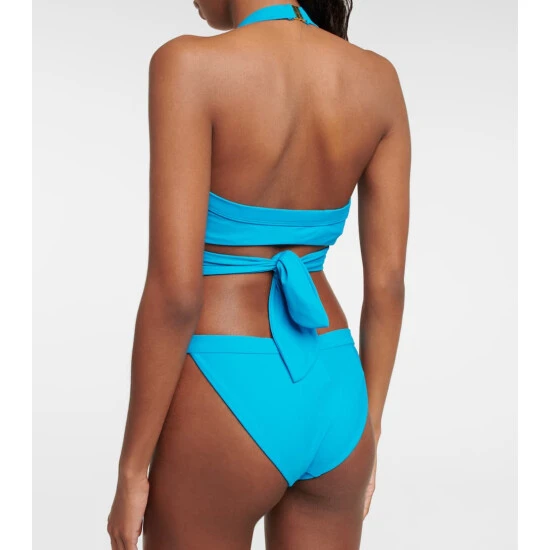 Made from a stretchy swim fabric, Rebecca Vallance’s Luana bikini top has a halterneck and a gold-tone metal fastening at the back.