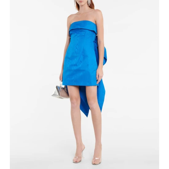 Make a statement at your next event in the Malone minidress from Rebecca Vallance. Made entirely from taffeta, it has a fold-down strapless bodice and a dramatic bow in the back.