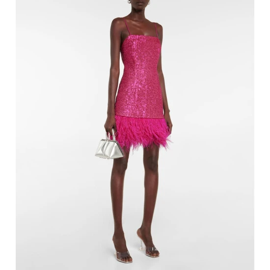 Dare to dazzle in the Mytheresa-exclusive Missing Hours minidress from Rebecca Vallance. The sequined style is trimmed with plush feathers and held up by wispy shoulder straps.