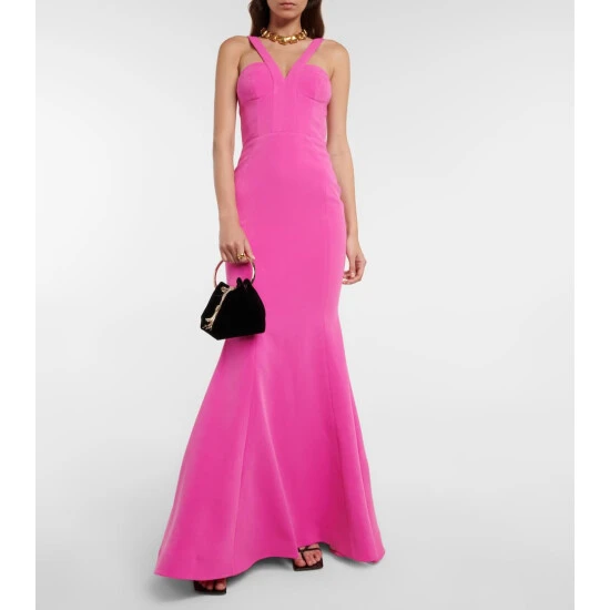 Now that you’ve RSVP’d, it’s time to decide what to wear: Rebecca Vallance’s Rosanna gown has our vote. The heavy crêpe fabrication lends it its shape: from the supportive, cupped bodice to the mermaid skirt.