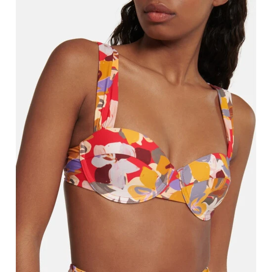 Inspired by the traditional architecture of the outer Canary Islands, Rebecca Vallance’s Santiago bikini top is distinguished by its painterly floral print. Fitted with built-in padding, this balconette style features wide straps and offers moderate coverage.