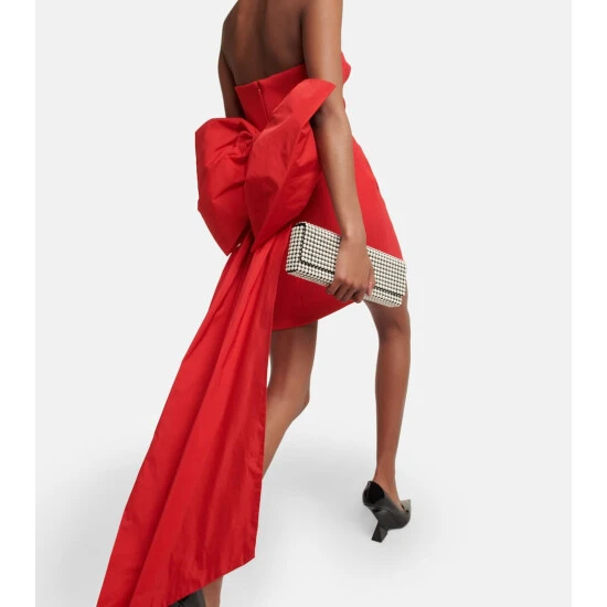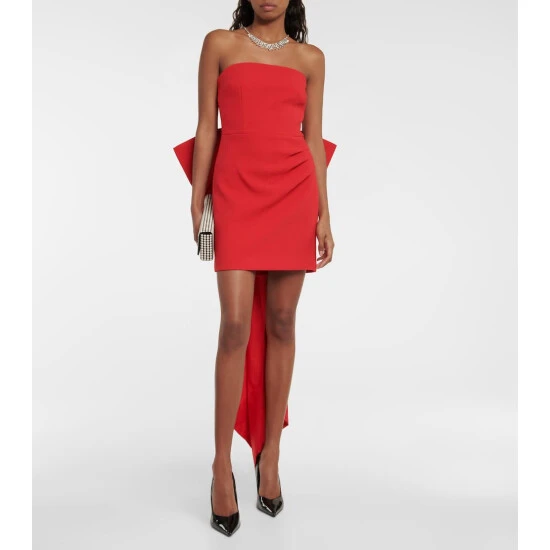 Make a striking entrance at winter parties in the Scarlett minidress from Rebecca Vallance. Made from crêpe, the strapless design features an internal shelf bra for support and is defined by its statement taffeta bow.