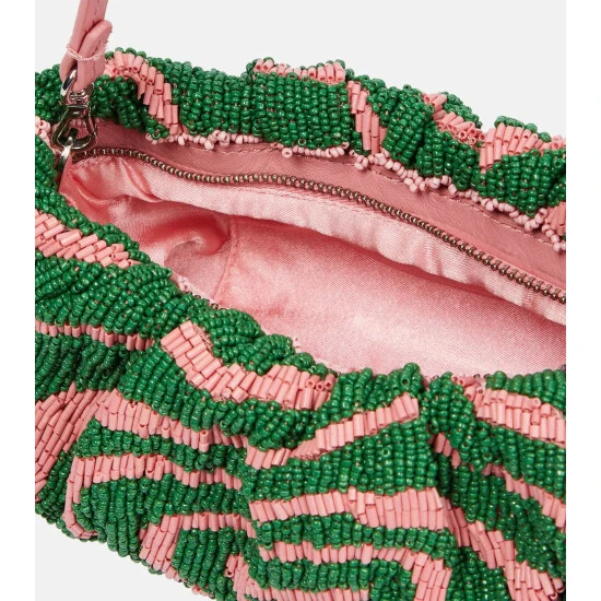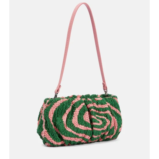 The beaded Bean shoulder bag is a new take on a Staud signature. Compact and hand-beaded, it features a removable thin strap and a top zip, making it perfectly convertible for day or night.
