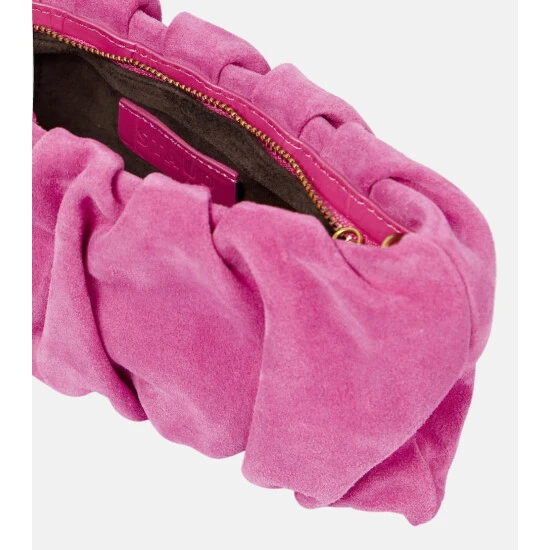 In an eye-catching hue, Staud’s Bean shoulder bag is made from lambskin suede. The compact design has a gathered silhouette for added dimension and a removable leather shoulder strap for versatile styling.