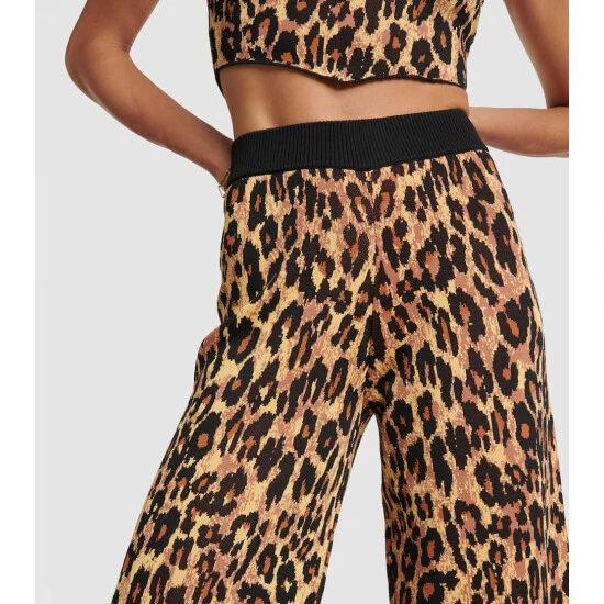 Distinguished by their bold leopard-print knit, the Brovo pants from Staud are a lesson in easy glamor. They’re shaped with a high-rise, rib-knitted waistband and breezy wide legs.