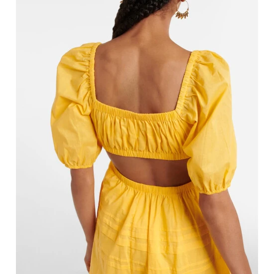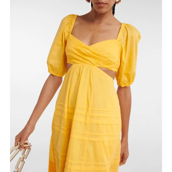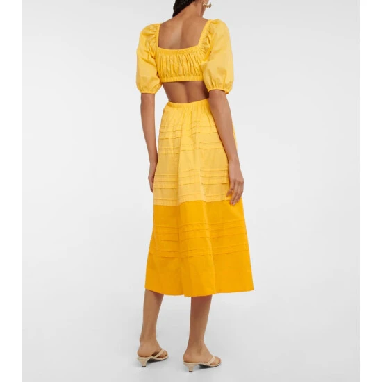 Make sunny statement with the Carina midi dress from Staud. Made from breathable cotton poplin, it features cutouts at the back and below the bust, and is accented with delicate pintuck details.