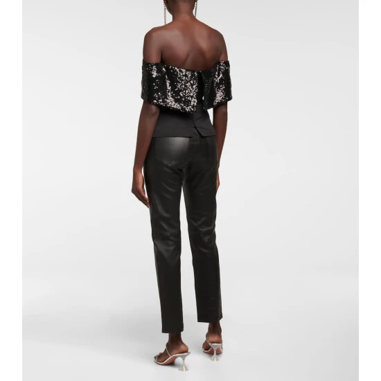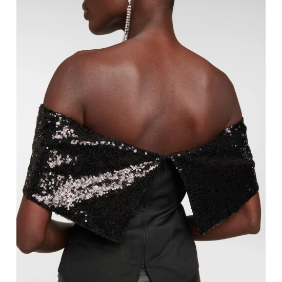 Turn the glamour up a notch with the Giselle top from Staud. Shaped with a contemporary off-shoulder neckline, it’s defined by a sequined fold-over detail.