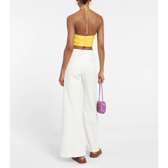 Shaped with a sweetheart neckline, the Kyra crop top from Staud will add a romantic edge to any ensemble. Made from a plissé rayon blend, this bustier style has a self-tie halterneck.