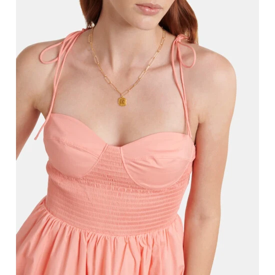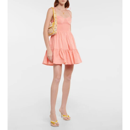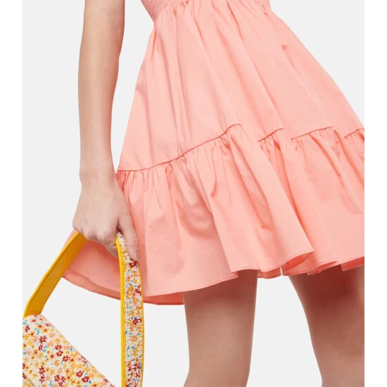 The Landry cotton poplin minidress from Staud is made from breathable cotton poplin. It features a smocked bodice with adjustable shoulder straps and a tiered skirt