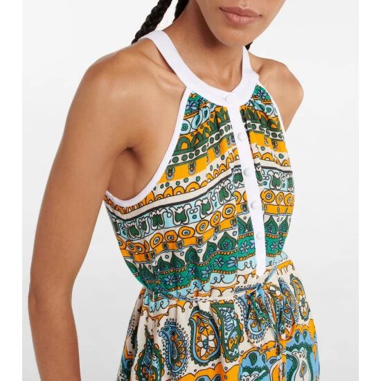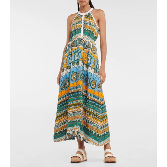 The Lisette midi dress from Staud is is made from breathable linen and shaped into a halterneck silhouette. It’s enriched with an a vibrant paisley print and comes with a removable belt.