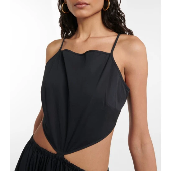 Made from cotton poplin with added stretch, Staud’s Myla maxi dress has side slit pockets and cutouts at the waist.