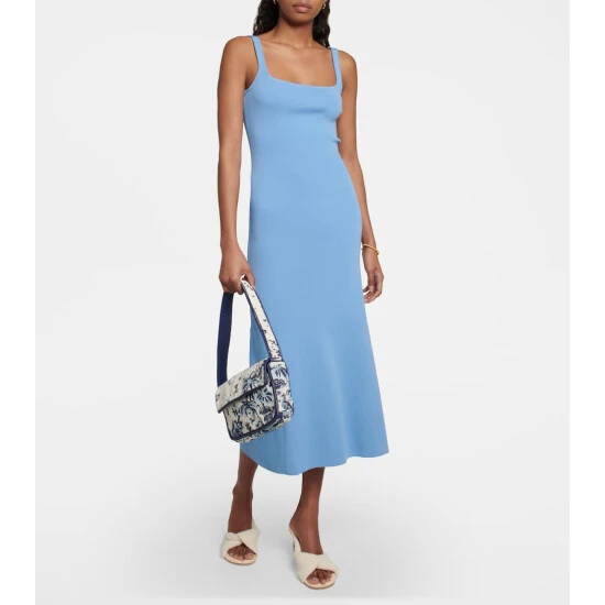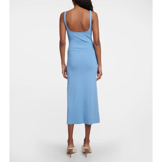 The Paityn midi dress from Staud is made from compactly knit fabric to create a supportive, slim fit. The square-neck design has thin shoulder straps and an open back.
