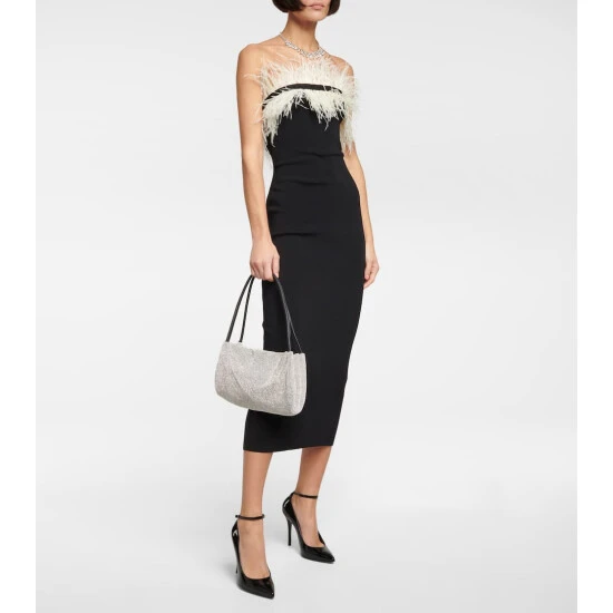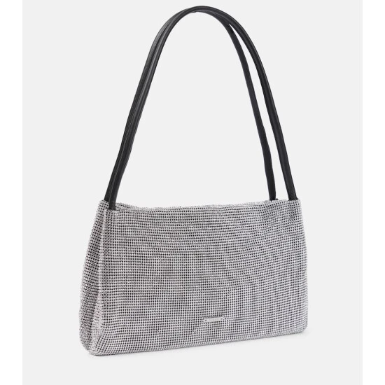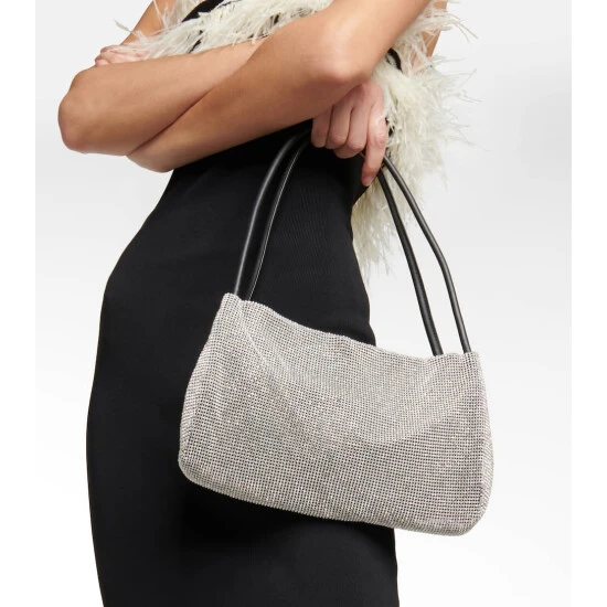Highlighted with rows of shimmering crystals, Staud’s Penny shoulder bag will complement all your after-dark ensembles. Shaped into a slouchy silhouette, it features faux leather top handles and subtle logo hardware.