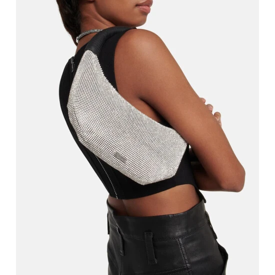 The Pepper tote bag from Staud has a charming crescent silhouette which is perfect for a night out. It’s coated with glittering crystal-embellished and is finished with a faux leather handle.