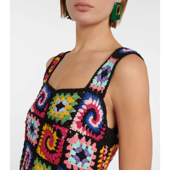 Inject fun and color into your closet with the Psychedelic minidress from Staud. This colorful piece is made from hand-crocheted cotton granny squares that feature colorful swirl patterns.