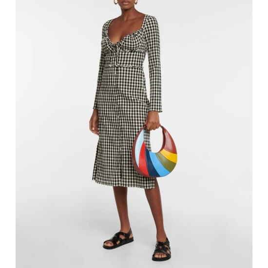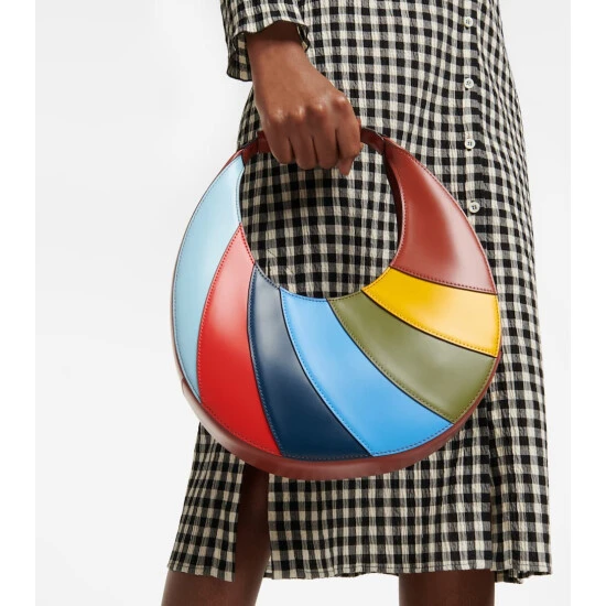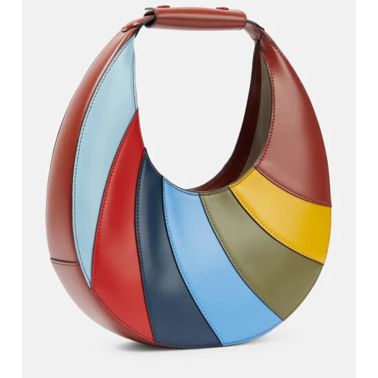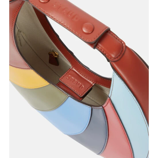 Spin the color wheel for a dazzling accessory with the Riviera Moon tote from Staud. Made from multicolored panels of smooth leather, this structured silhouette features a removable handle grip and interior zipped pouch.