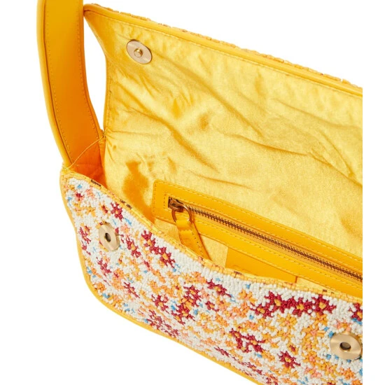 Refresh your accessories edit with vibrant and fun designs like Staud’s Tommy shoulder bag. The baguette style is made from satin and leather, and features delicate glass beads in a multicolored floral pattern.