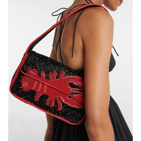 Let Staud be your go-to accessories guru for refreshing designs like the Tommy shoulder bag. Made from satin and leather, it features delicate glass beads in a one-of-a-kind lobster and wave pattern.