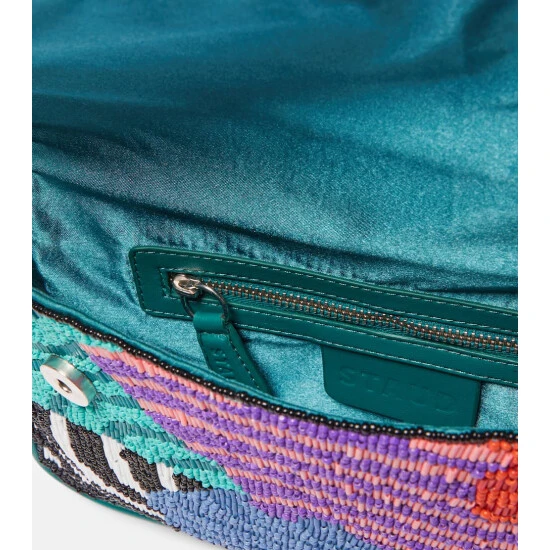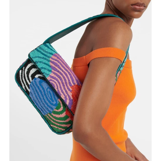 Let Staud be your go-to accessories guru for refreshing designs like the Tommy shoulder bag. The baguette style is made from satin and leather, and features delicate glass beads.