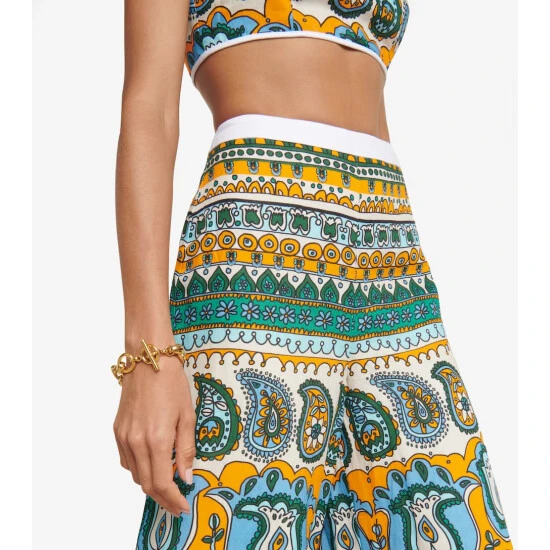 Stand out from the crowd this summer in the Vallea pants from Staud. Shaped for a high-rise waist and flared wide legs, they’re cut from breathable linen in a vibrant paisley print.