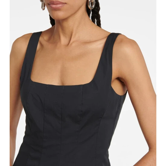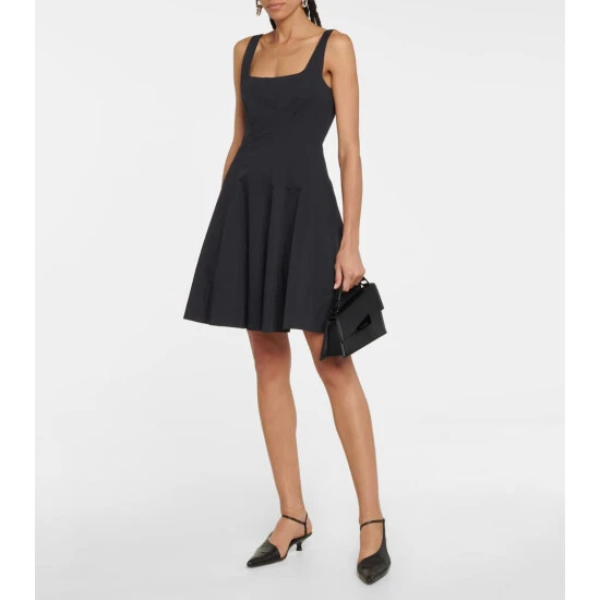 Staud’s fan-favorite Wells dress receives a mini update for the new season, now arriving with a shorter hemline. It’s cut from stretch-infused cotton with a corset-style paneled bodice and a pleated skirt.