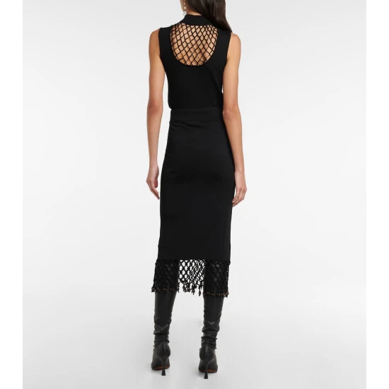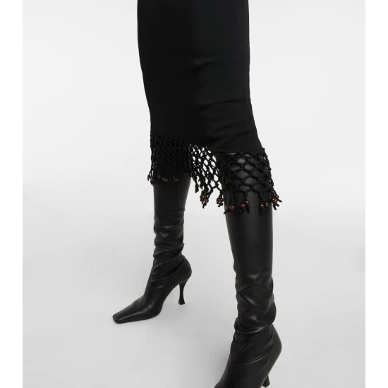 Made from a lightweight, stretchy knit, the Zumla midi skirt from Staud comes in black and features a knotted hemline finished with dark wooden beads. Pair this design with the matching Denise top.